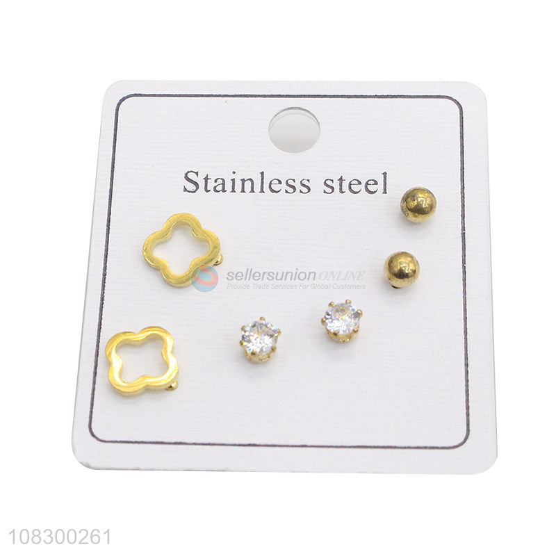 Best Sale 3 Pairs Stainless Steel Ear Stud Set For Girls