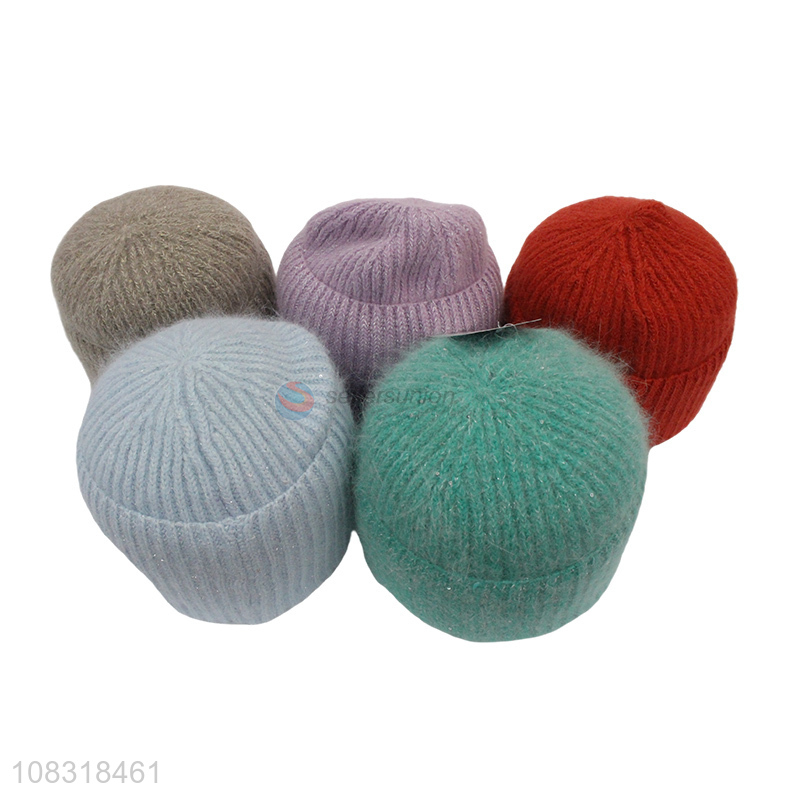 Top quality women winter hat solid color knitted beanies