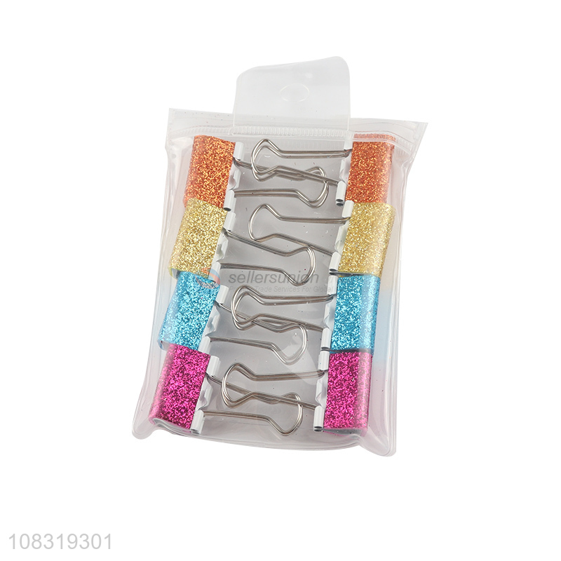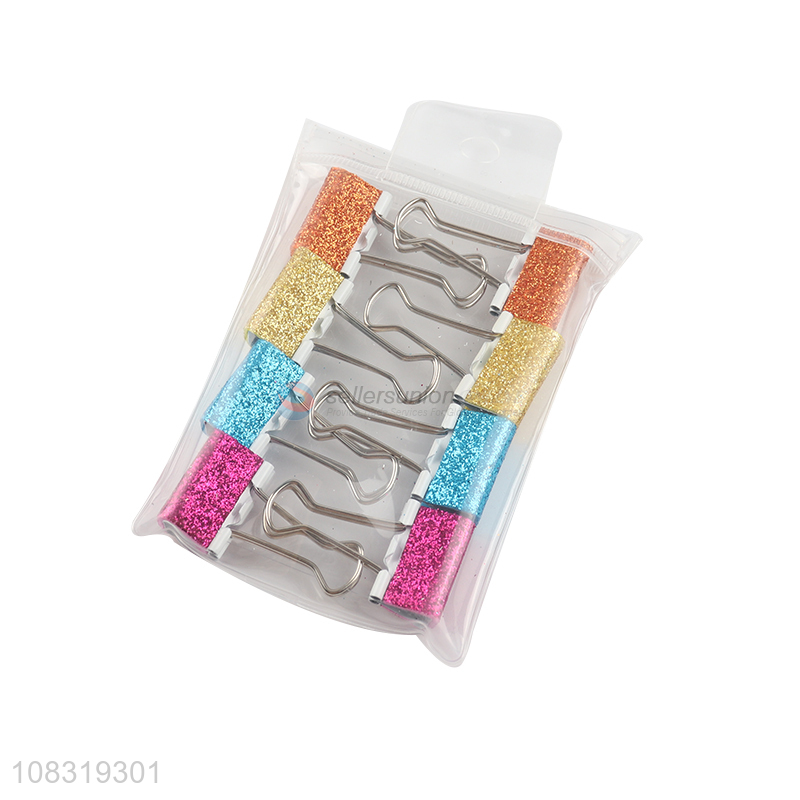 Hot selling 8pcs glitter metal binder clips paper clamps
