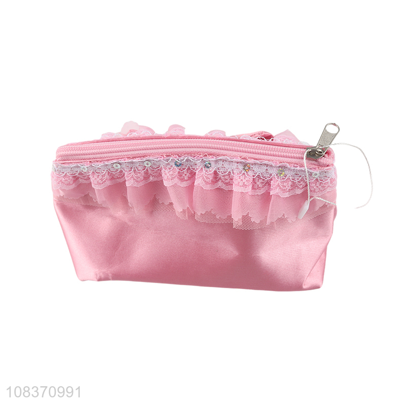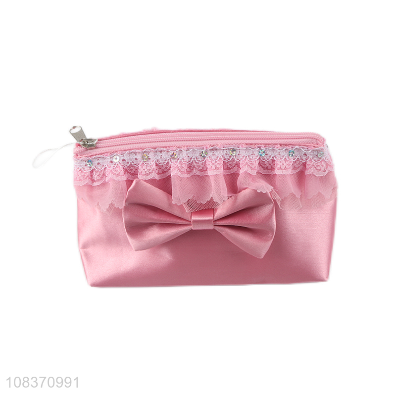 Wholesale bowknot cosmetic bag pu leather zippered makeup pouch