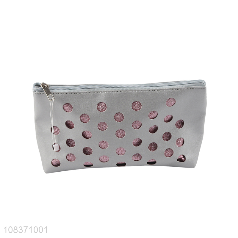 Wholesale hollowed-out pu leather makeup bag waterproof toiletry bag