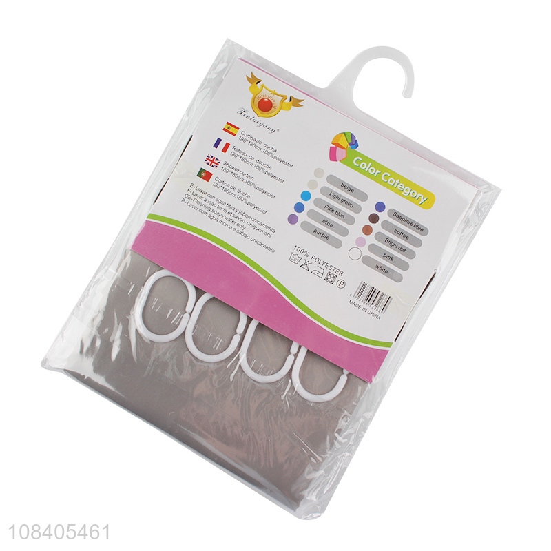 Good quality solid color PEVA shower curtain set with hooks 180*180cm