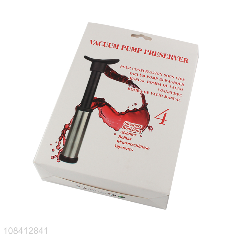Hot sale stainless steel vacuum wine saver pump preserver bottle stopper