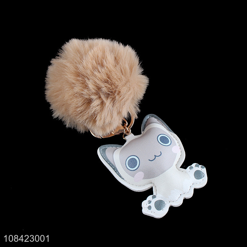 Factory supply furry puff ball keychain pu leather key chain11