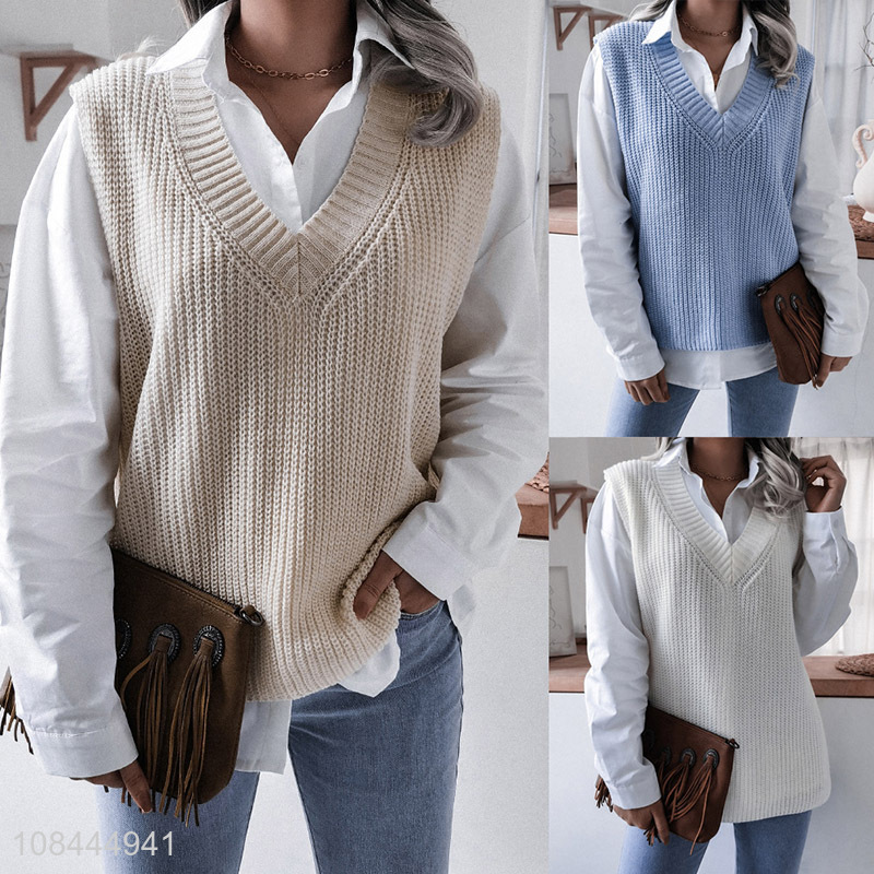 Wholesale solid color winter warm knitted vest sweater vest for women
