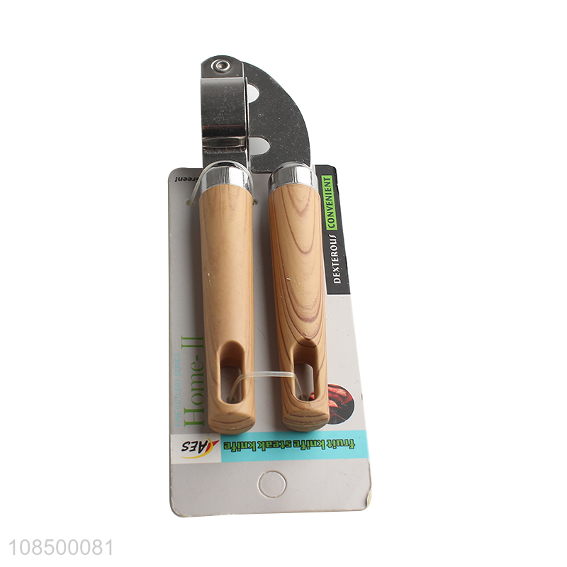Wholesale stainless steel garlic press garlic mincer with wood grain handle