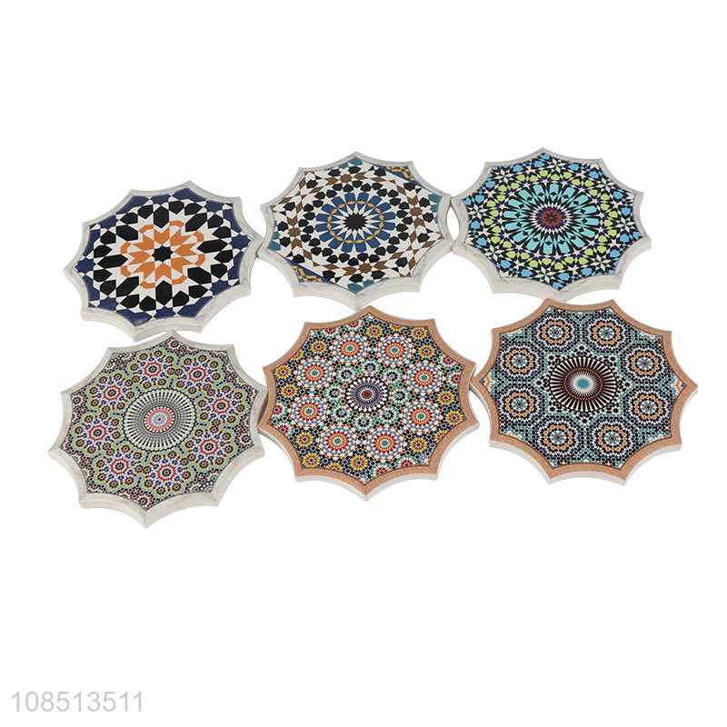 Good quality absorbent mandala ceramic coaster cork cup mat for gift