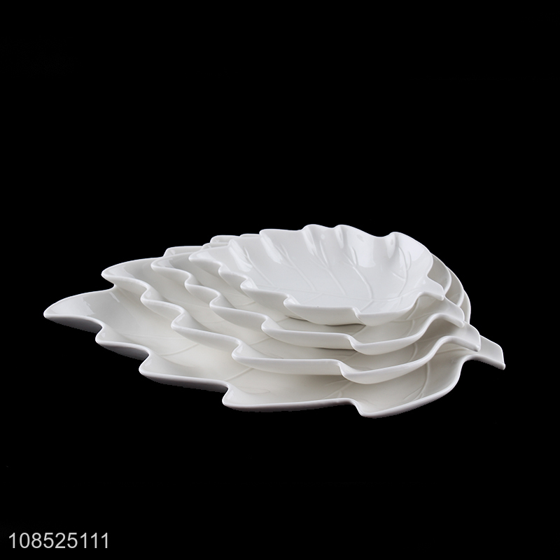 Hot products white leaves shape plate ceramic dishes for sale