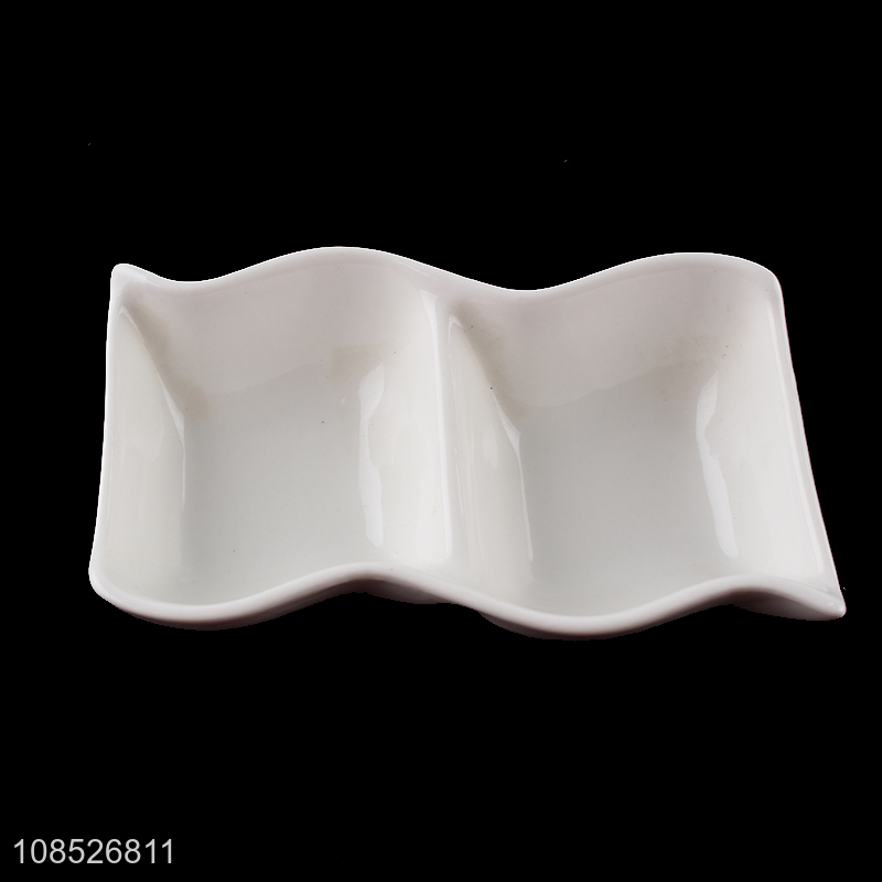 Bottom price 2-compartment ceramic plate for appetizers fruits