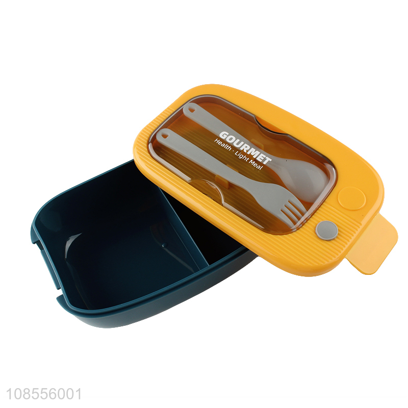 Wholesale food grade plastic 2-compartment bento box with spoon & fork