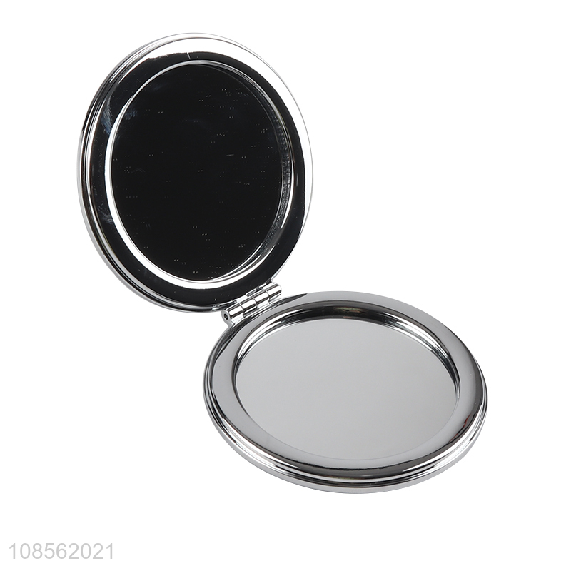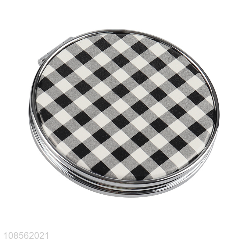 Factory supply round folding makeup mirror with check pattern