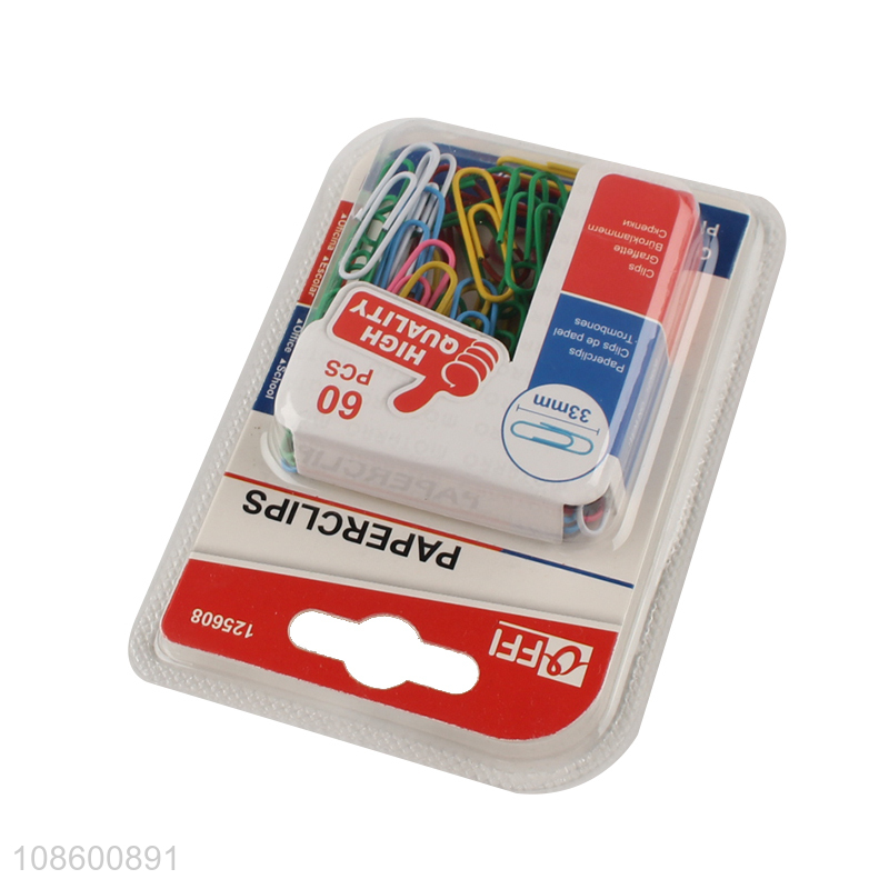 Wholesale 60pcs colorful metal paper clips office paper clamps