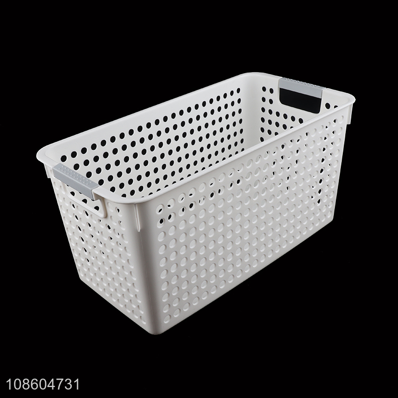 Good sale narrow plastic hollow white storage basket wholesale