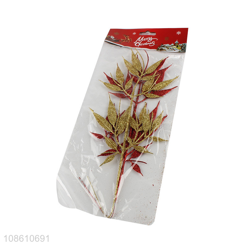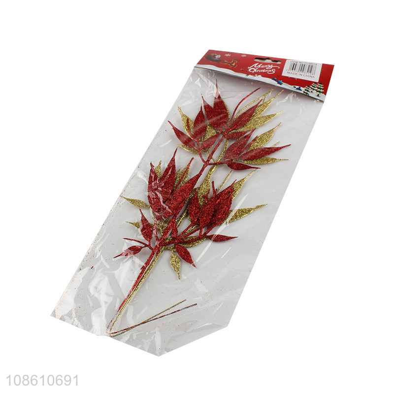 Yiwu factory leaves shape glitter christmas ornaments decoration
