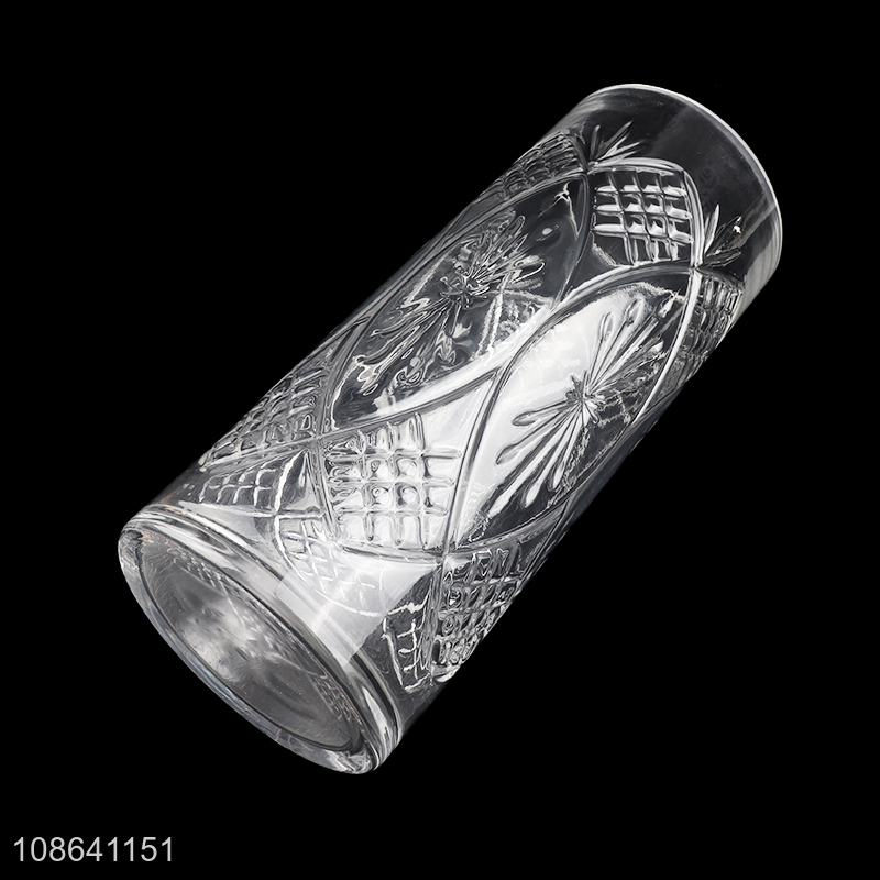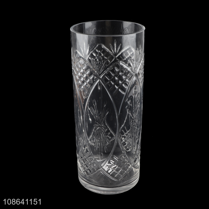 Factory supply vertical embossed glass flower vases home decoration