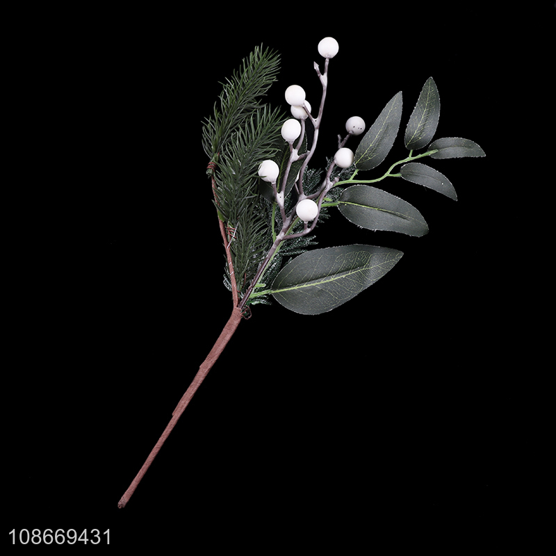 Good selling white berry picks pine cone branch for christmas decoration