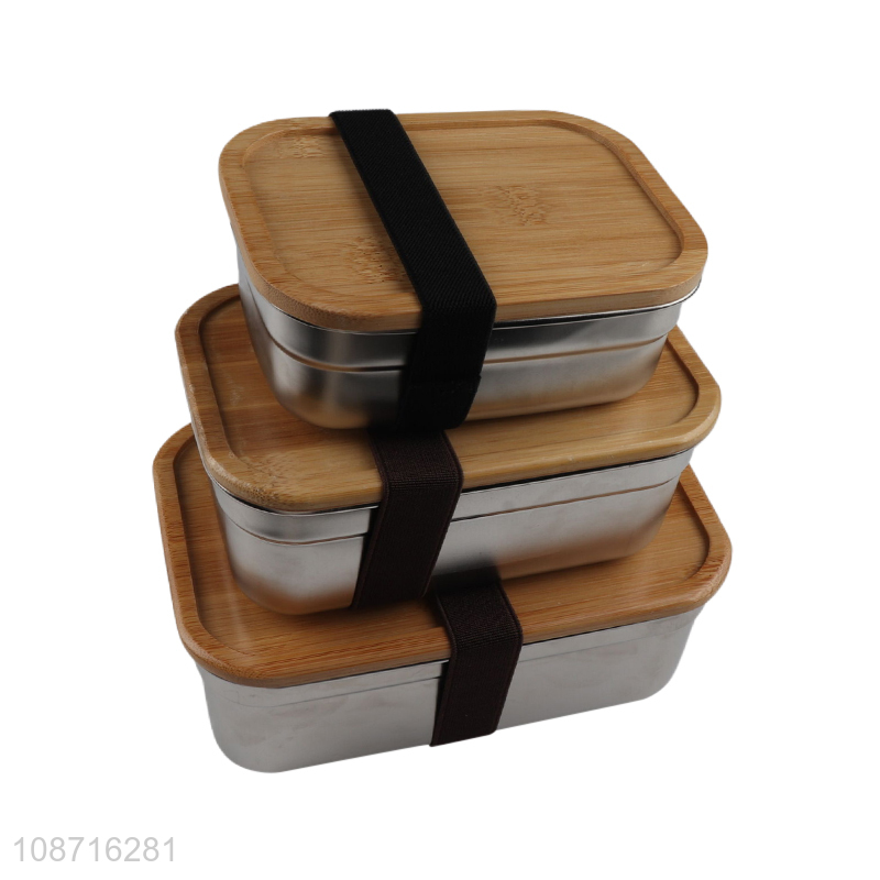 Wholesale plastic free bamboo lid stainless steel bento lunch box for travel