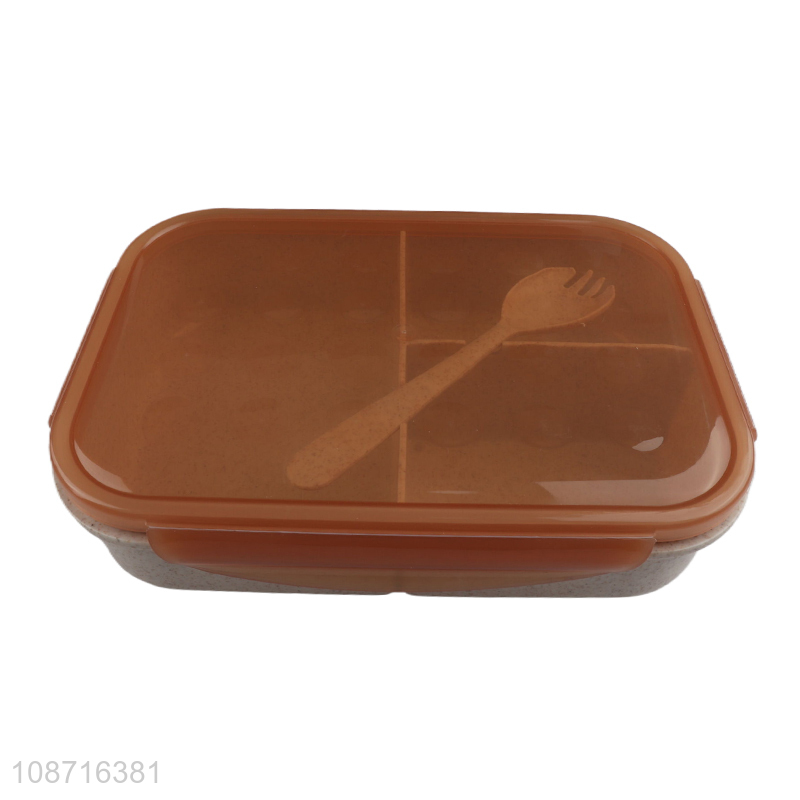 High quality 3-compartment bpa free leakproof natural wheat straw lunch box