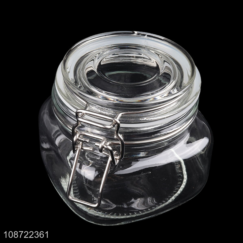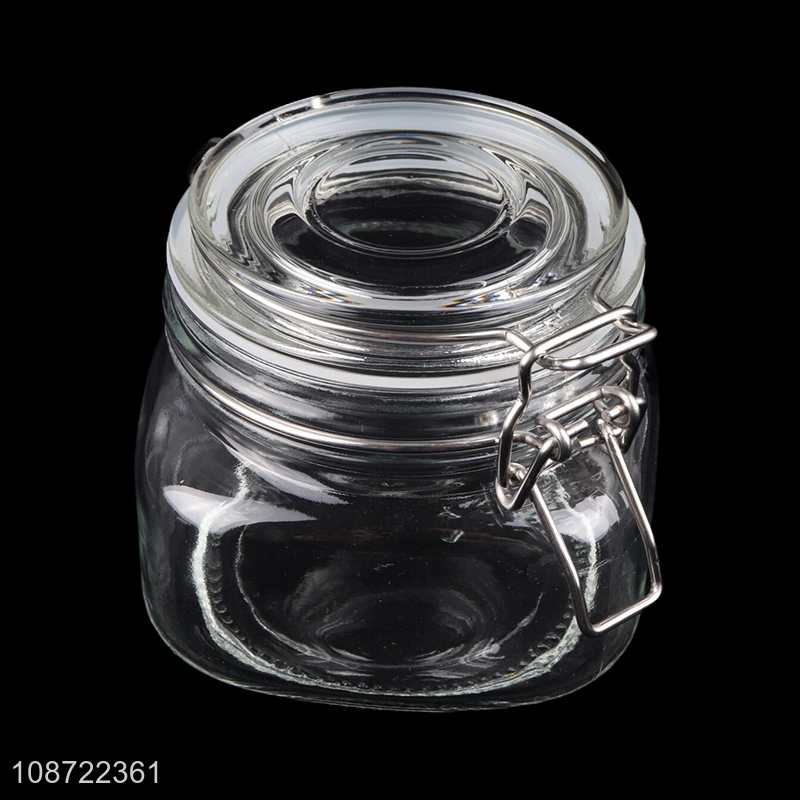 Low price glass clear flip top candy snack storage jar for kitchen