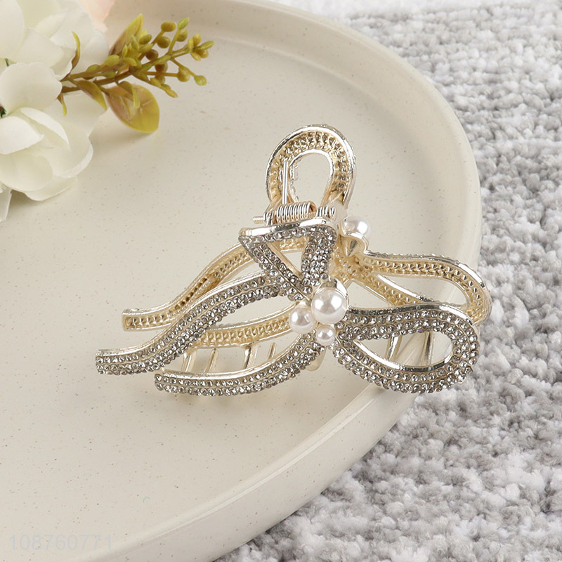 China import pearl rhinestone bow hair claw clip alloy hair jaw clip