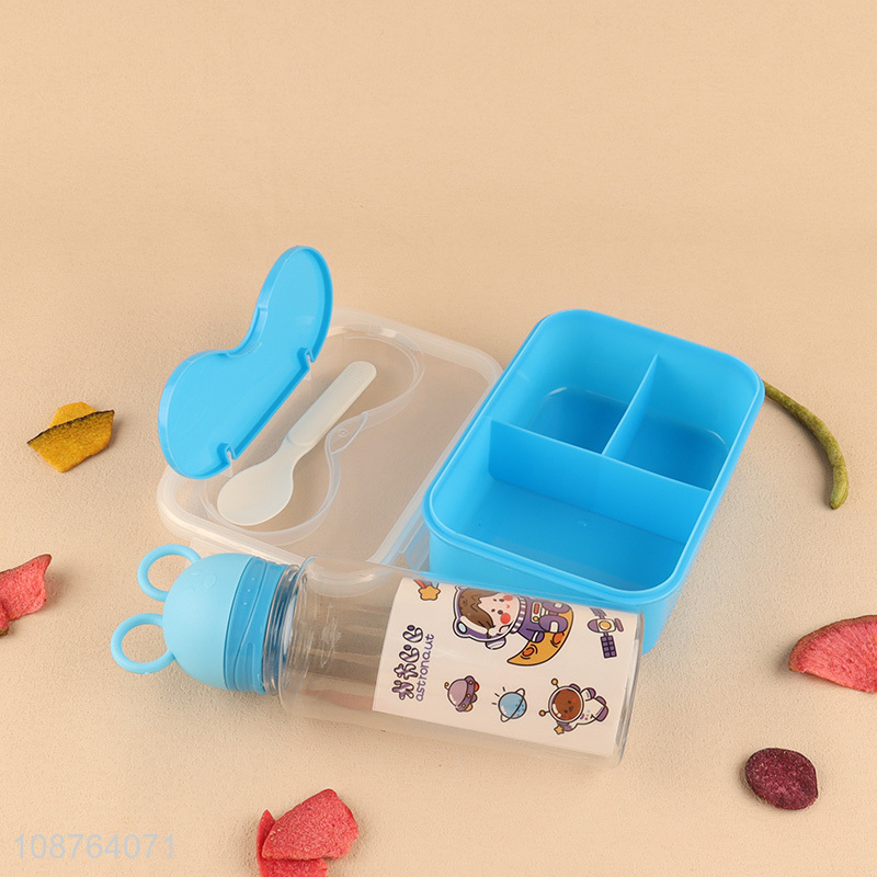 Latest products blue plastic lunch box and water bottle set for children