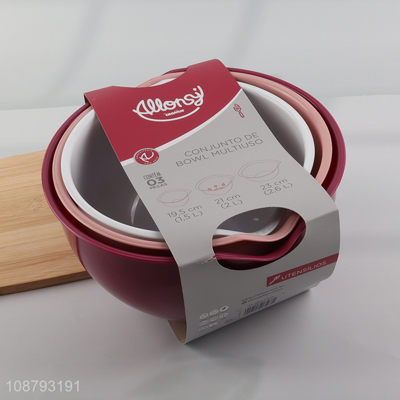Wholesale 3pcs food grade plastic salad bowls mixing bowls