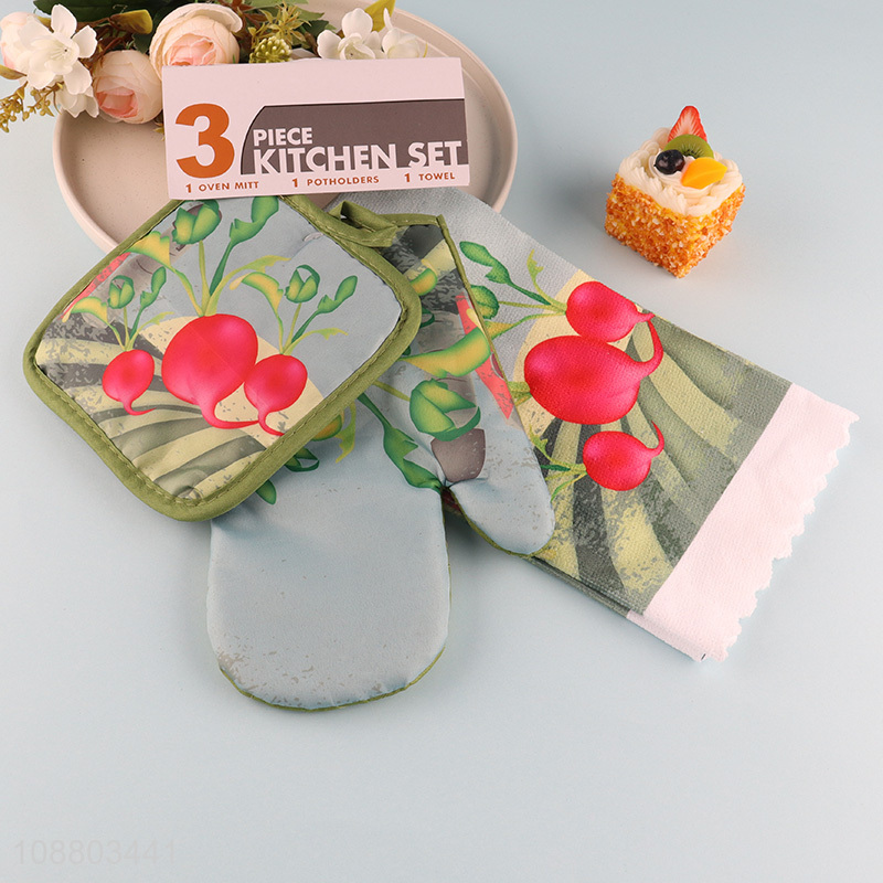 China product 3pcs oven mitt pot holder and dish towel set