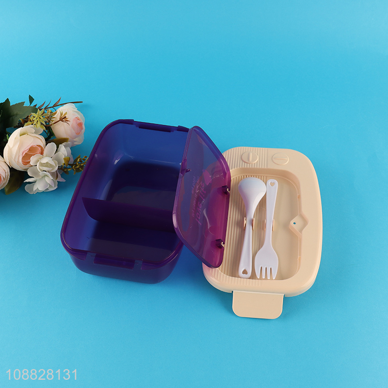 Factory direct sale plastic portable lunch box with tableware set