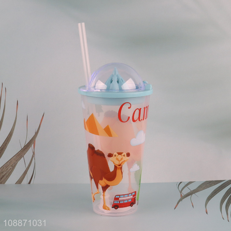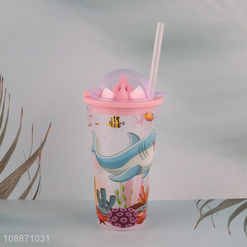 China products cartoon kids double wall water cup with straw&lights