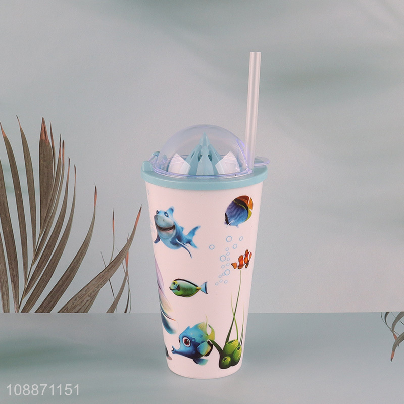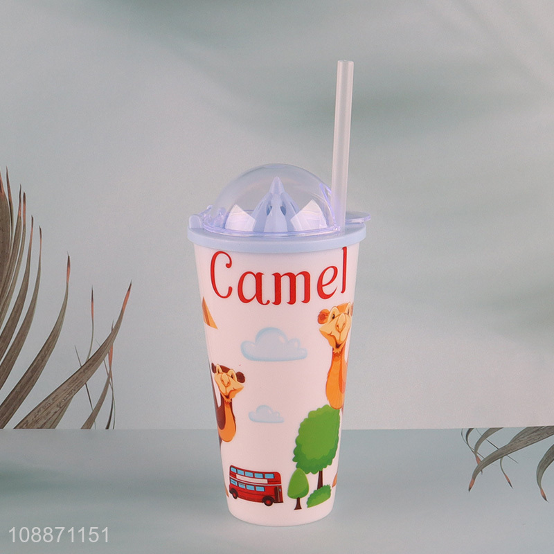 Factory wholesale double wall cartoon plastic straw cup water cup