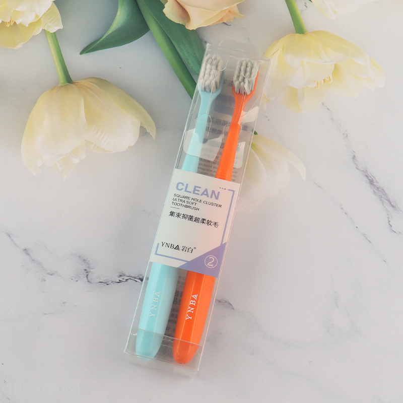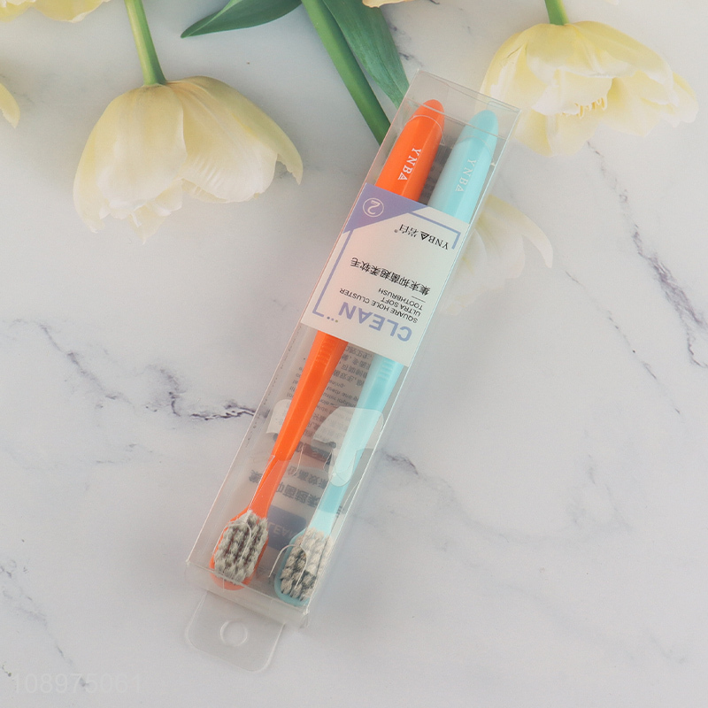 Top sale 2pcs adult square hole cluster ultra soft toothbrush
