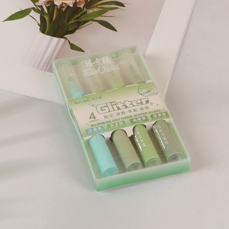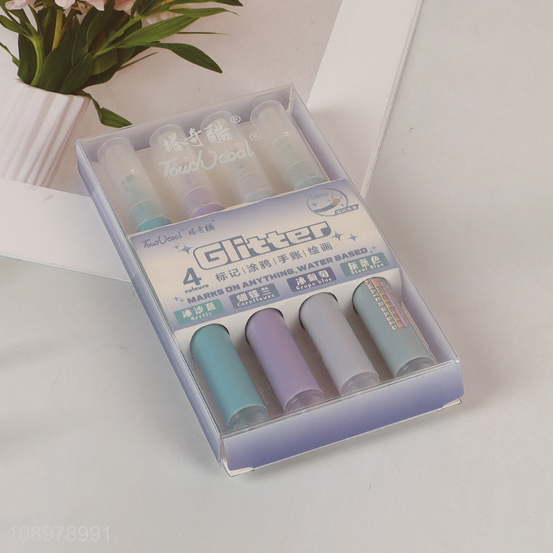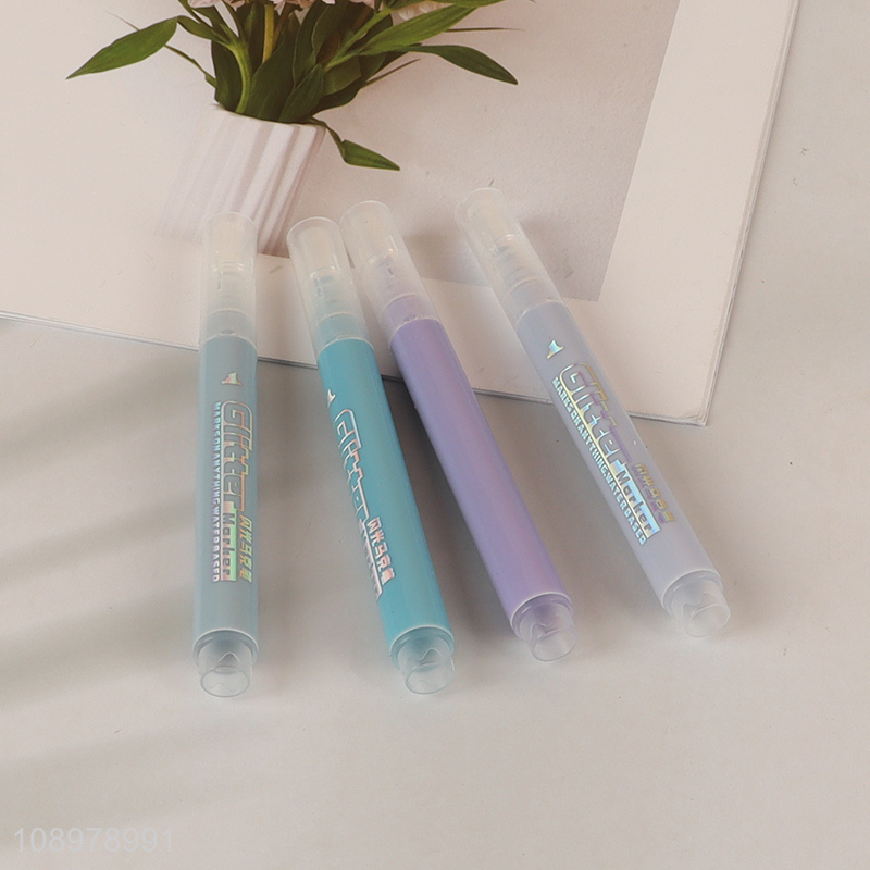 New Product 4 Colors Water Based Glitter Highlighter Pens for Journaling