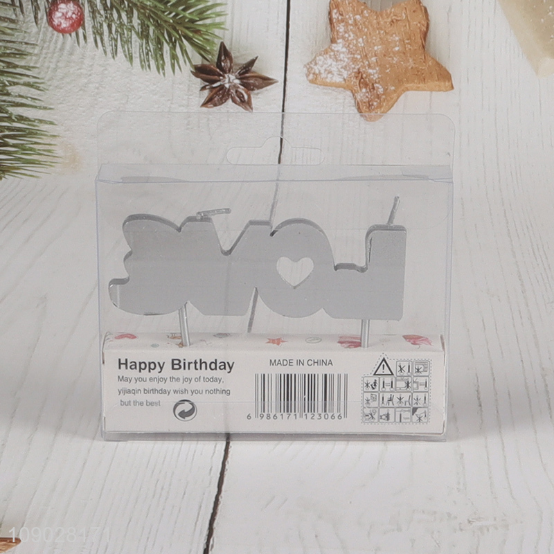 Yiwu market silver love letter birthday cake decorative candle cupcake candle
