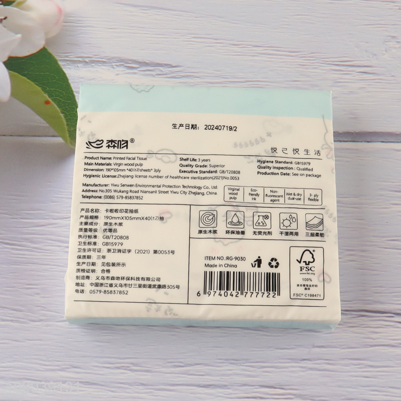 Best selling cartoon printed portable wood pulp tissue facial tissue napkin