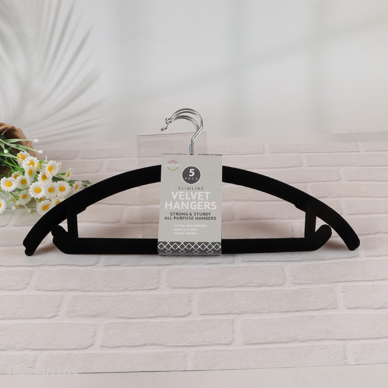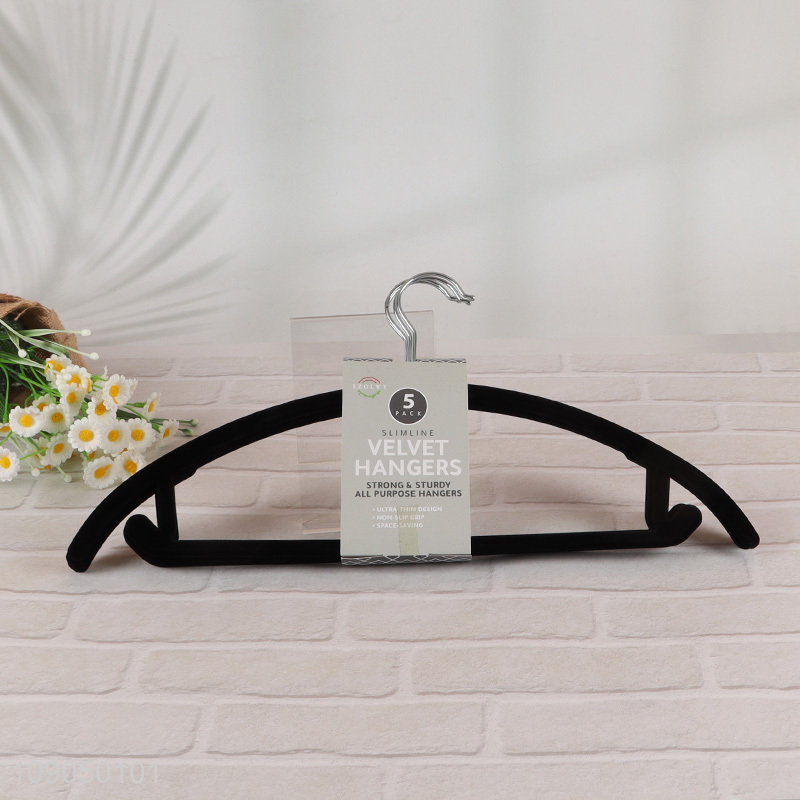 Factory supply 4pcs traceless black velvet clothes hanger set for sale