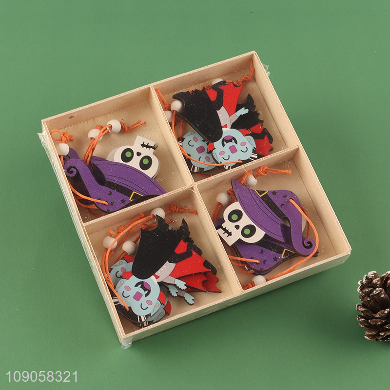 High Quality 12PCS Halloween Wooden Hanging Decorations Small Wooden Ornaments with Rope
