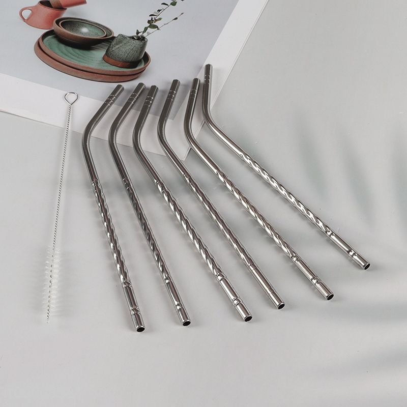 High Quality 6 Pack Stainless Steel Straws Bent Straws with 1 Straw Brush