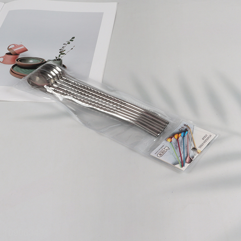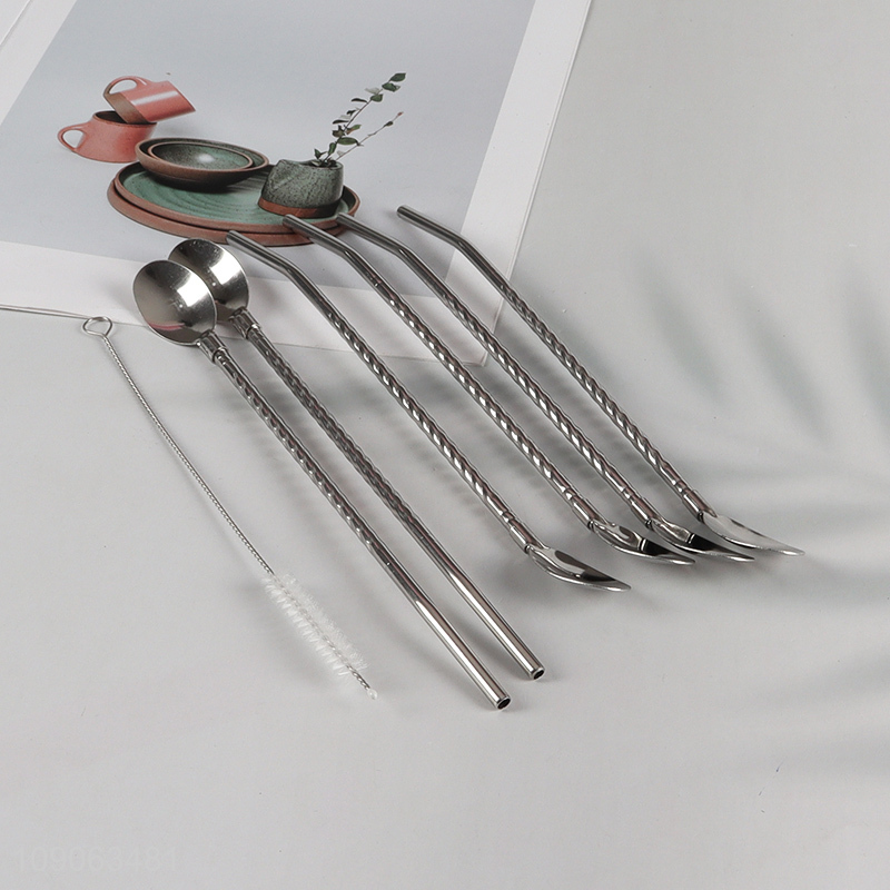 High Quality 6 Pack Stainless Steel Metal Straw Spoons with 1 Straw Brush