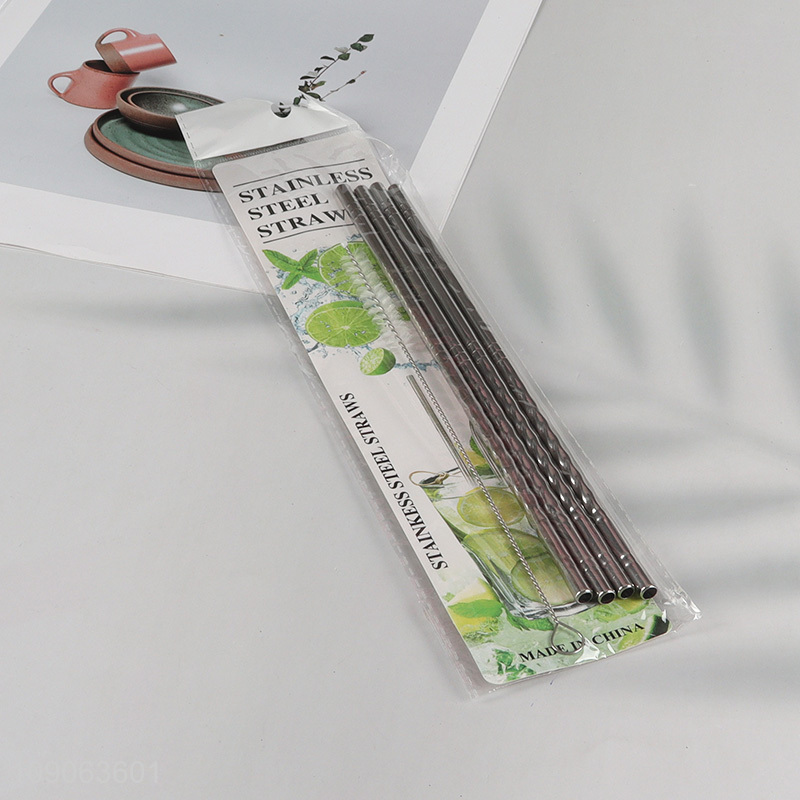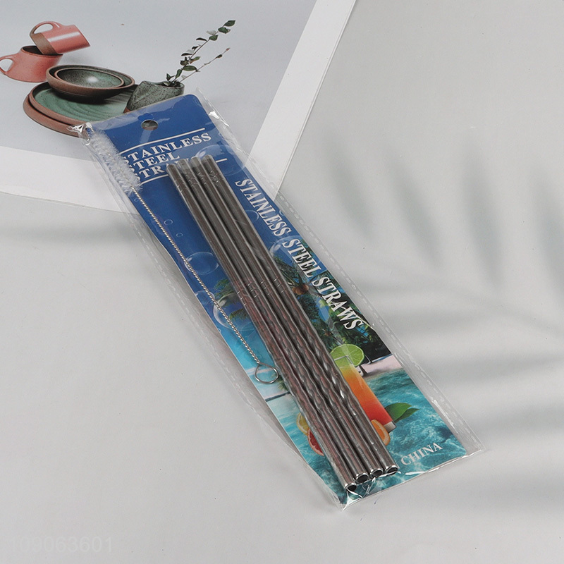 Good Quality 4 Pack Stainless Steel Straws Straight Straws with 1 Straw Brush