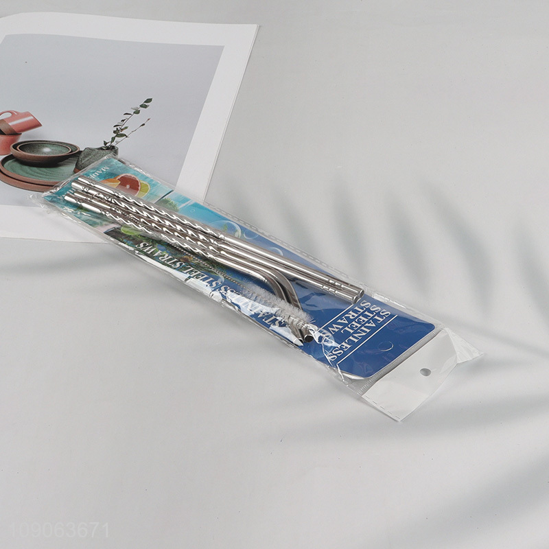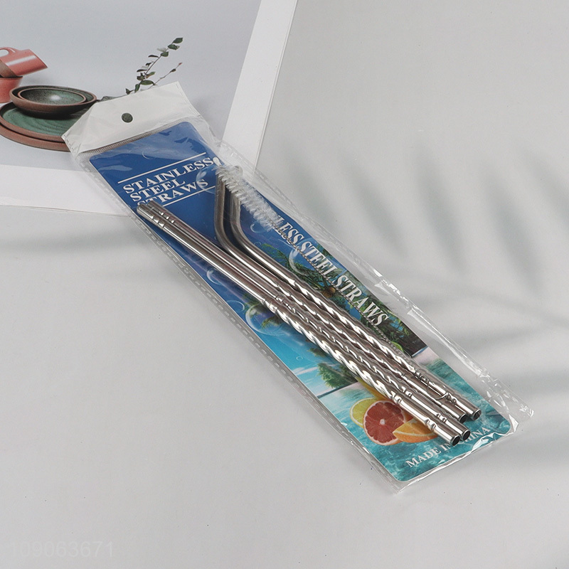 Wholesale 4 Pack Stainless Steel Straws 2 Straight + 2 Bent with 1 Straw Brush