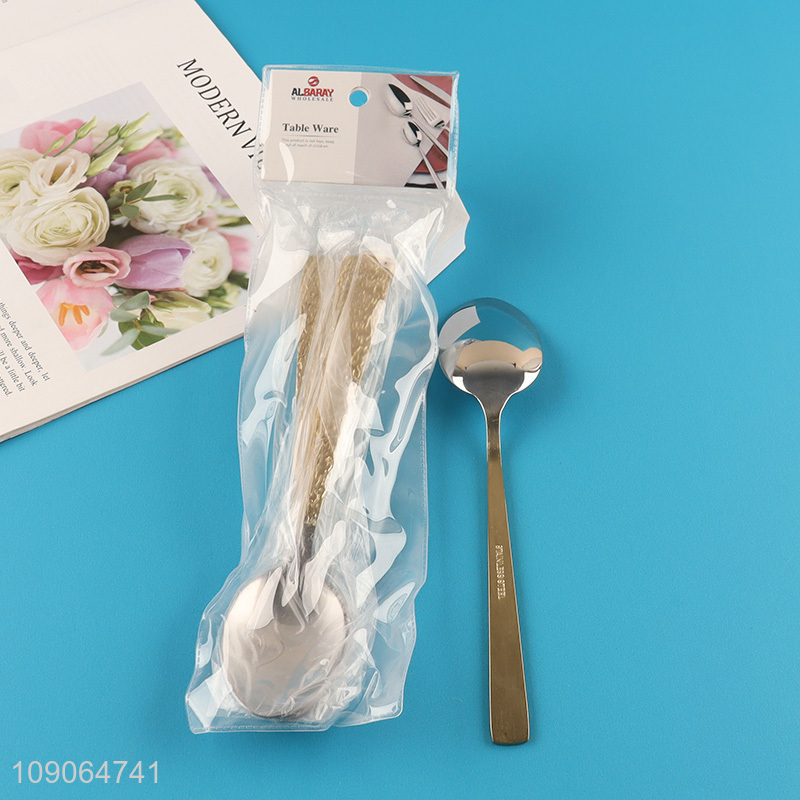 Factory Direct Sale 4 Pack Silver Gold Stainless Steel Hammered Dinner Spoons Set