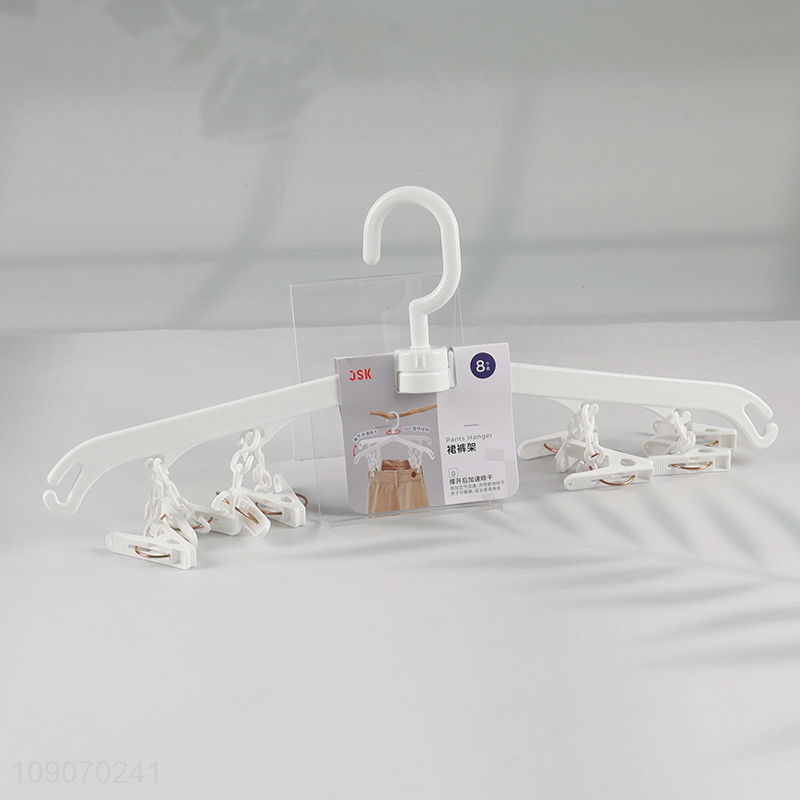 Wholesale Heavy Duty Space Saving Pants Skirt Hanger with 8 Clips