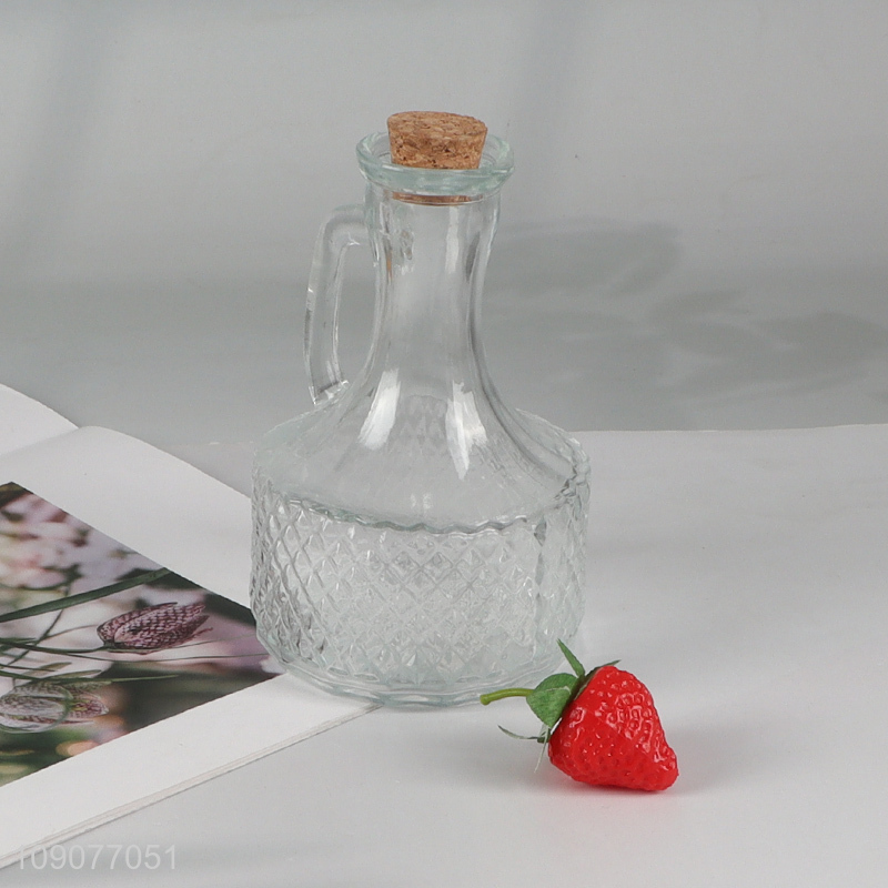 Hot Sale Embossed Glass Olive Oil Dispenser Bottles with Handle and Cork