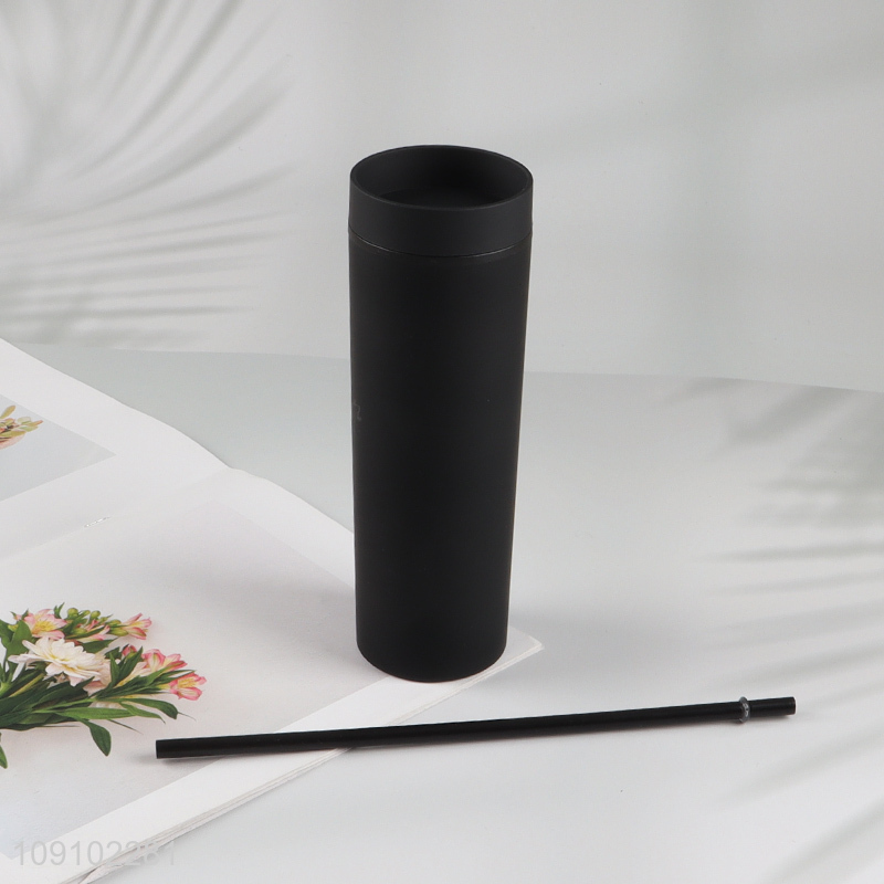 China products black plastic water cup drinking cup with lid and straw