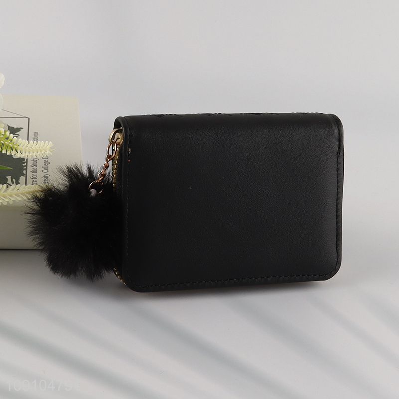 High Quality Womens Wallet PU Leather Zipper Wallet With Fur Ball