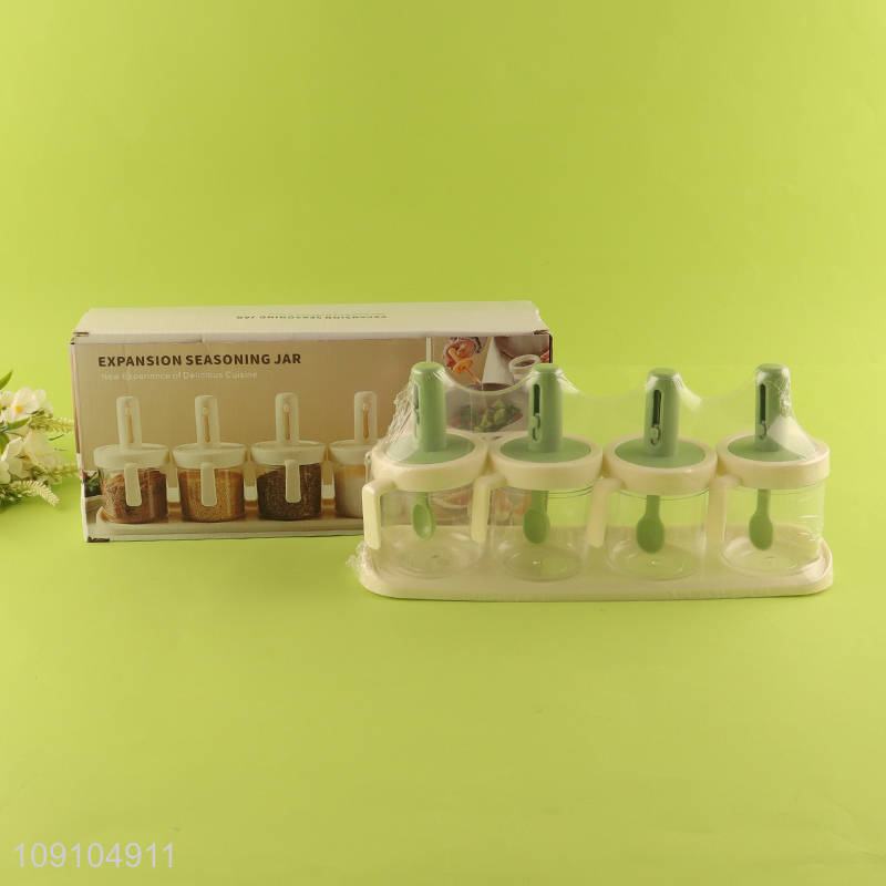 Wholesale 4 Pieces Seasoning Jars Salt Containers with Lid and Retractable Spoon
