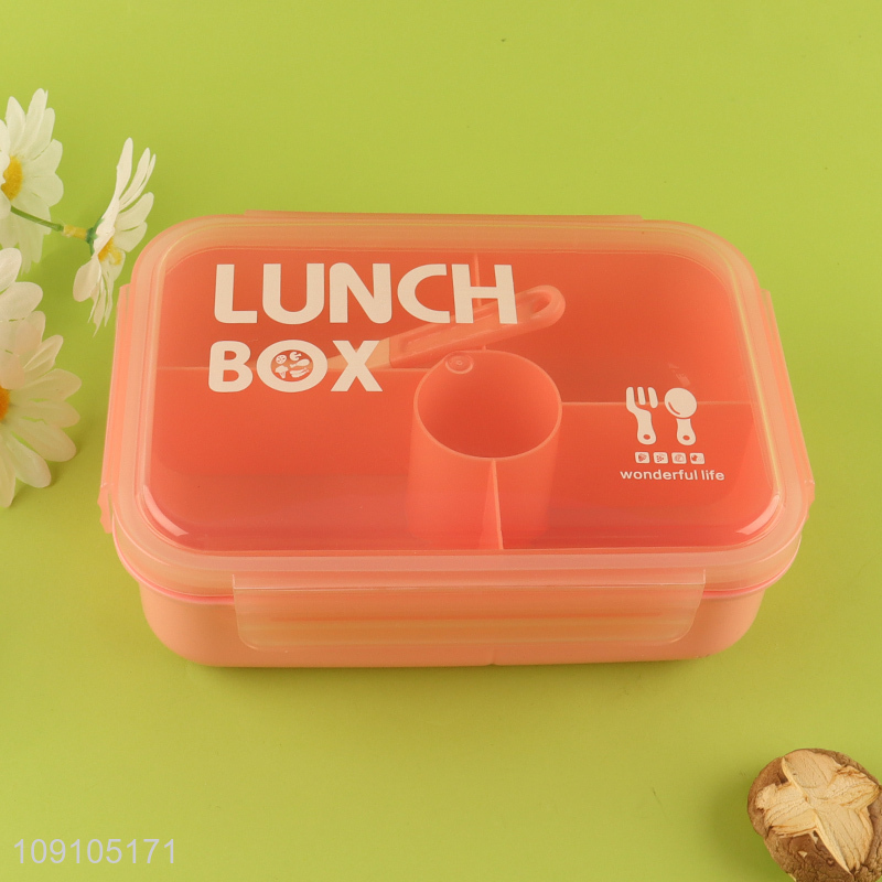 Factory Price 4-Compartment Plastic Bento Box Lunch Container with Spoon & Fork