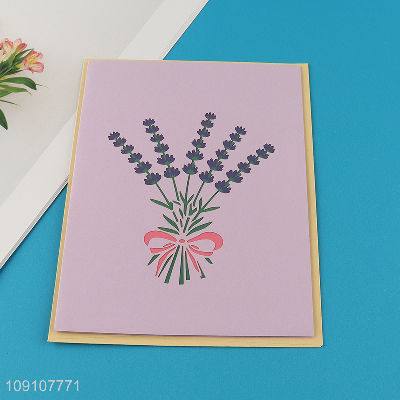 Factory Supply 3D Greeting Card Lavander Pop Up Card for Mother's Day