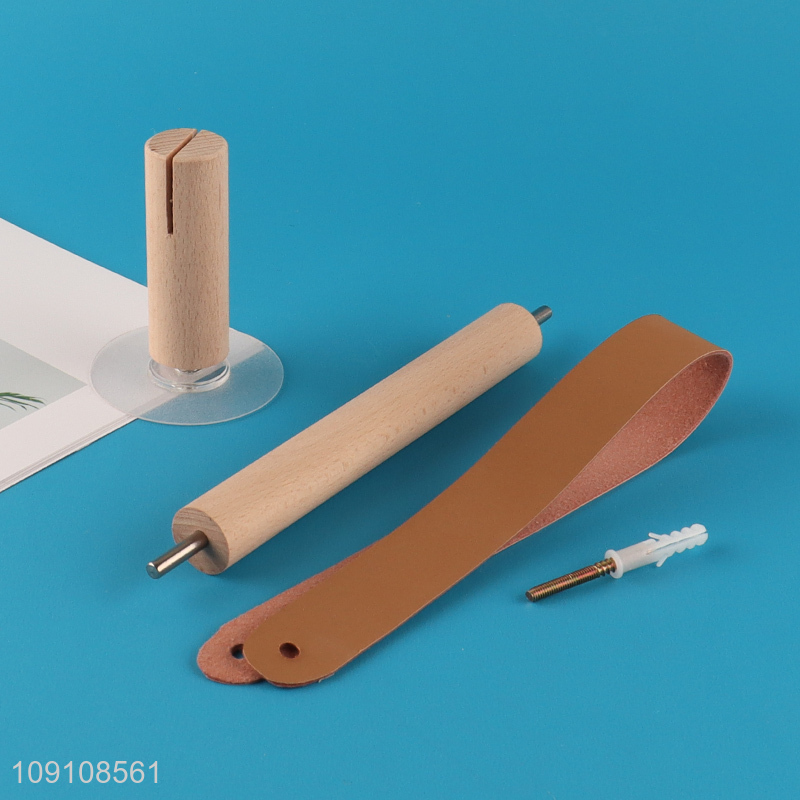 New Product Wood & Leather Wall Paper Towel Holder for Kitchen Bathroom