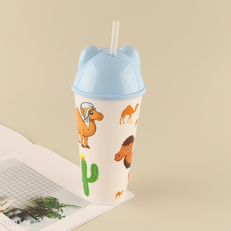Best quality cartoon plastic 500ml water cup straw cup for sale